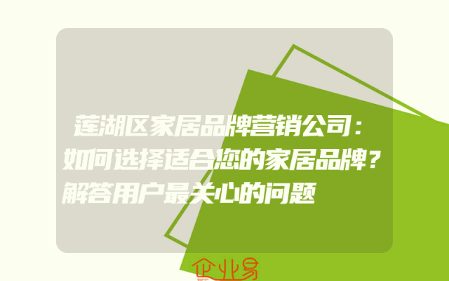 - 莲湖区家居品牌营销公司:如何选择适合您的家居品牌?解答用户最关心的问题