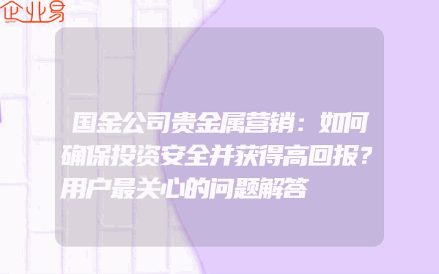 - 国金公司贵金属营销:如何确保投资安全并获得高回报?用户最关心的问题解答