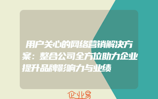 - 用户关心的网络营销解决方案:整合公司全方位助力企业提升品牌影响力与业绩
