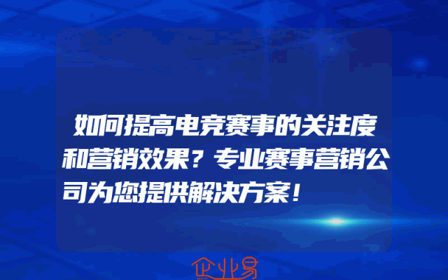 - 如何提高电竞赛事的关注度和营销效果?专业赛事营销公司为您提供解决方案!