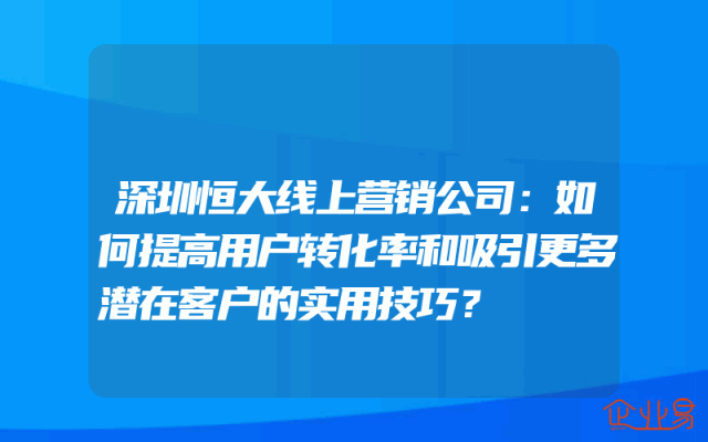 - 深圳恒大线上营销公司:如何提高用户转化率和吸引更多潜在客户的实用技巧?