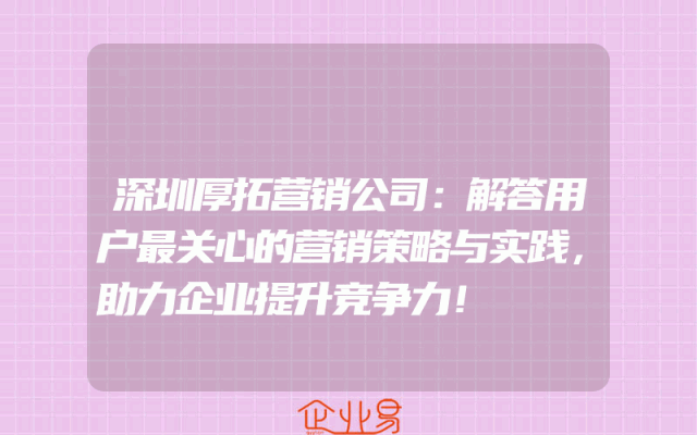 - 深圳厚拓营销公司:解答用户最关心的营销策略与实践,助力企业提升竞争力!