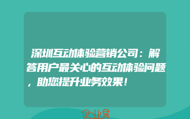 - 深圳互动体验营销公司:解答用户最关心的互动体验问题,助您提升业务效果!