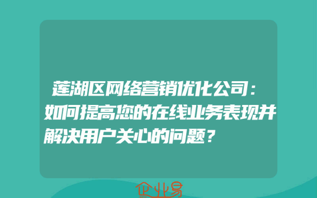 - 莲湖区网络营销优化公司:如何提高您的在线业务表现并解决用户关心的问题?