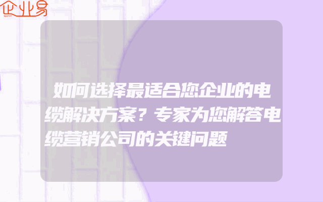 - 如何选择最适合您企业的电缆解决方案?专家为您解答电缆营销公司的关键问题