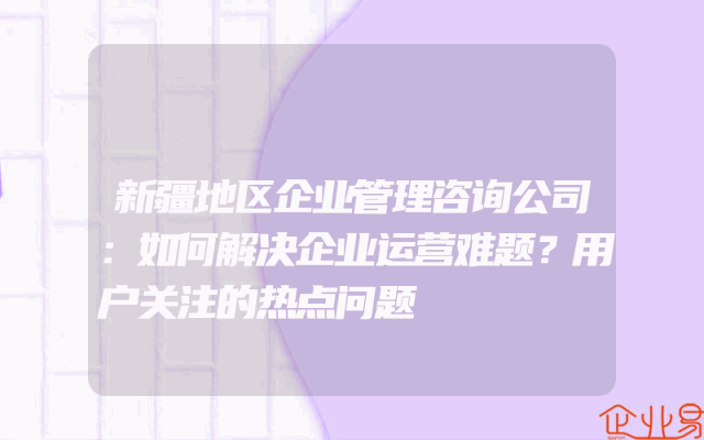 - 新疆地区企业管理咨询公司:如何解决企业运营难题?用户关注的热点问题