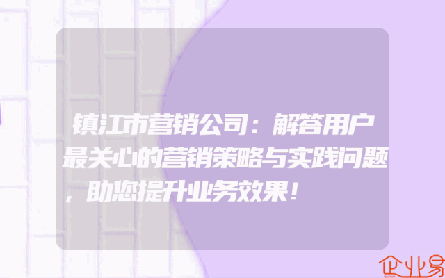 - 镇江市营销公司:解答用户最关心的营销策略与实践问题,助您提升业务效果!