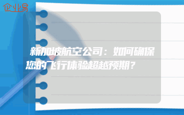 - 新加坡航空公司:如何确保您的飞行体验超越预期?