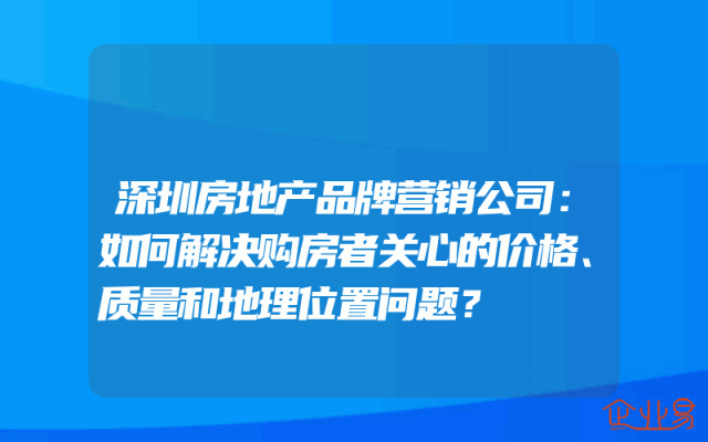 - 深圳房地产品牌营销公司:如何解决购房者关心的价格、质量和地理位置问题?