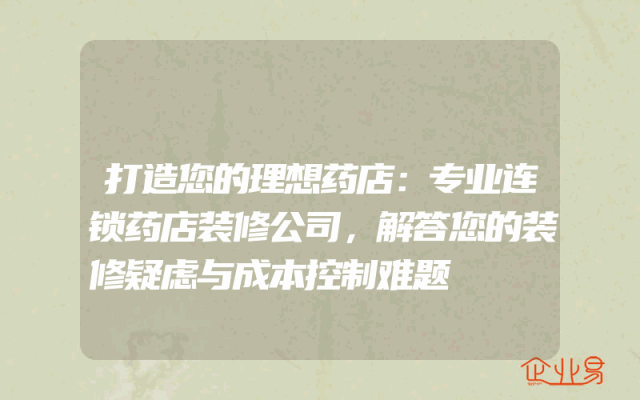 - 打造您的理想药店:专业连锁药店装修公司,解答您的装修疑虑与成本控制难题