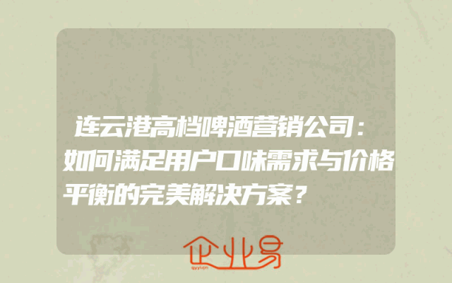 - 连云港高档啤酒营销公司:如何满足用户口味需求与价格平衡的完美解决方案?