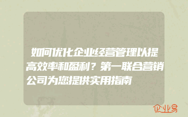 - 如何优化企业经营管理以提高效率和盈利?第一联合营销公司为您提供实用指南