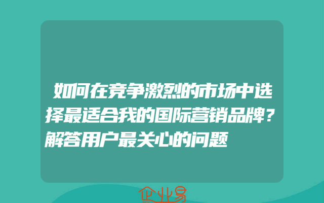 - 如何在竞争激烈的市场中选择最适合我的国际营销品牌?解答用户最关心的问题