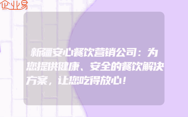 - 新疆安心餐饮营销公司:为您提供健康、安全的餐饮解决方案,让您吃得放心!