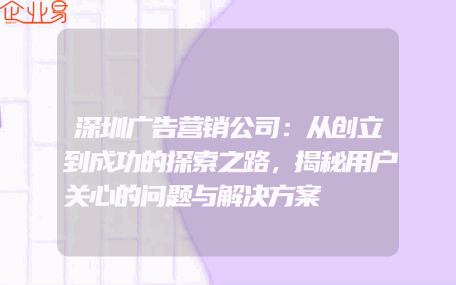 - 深圳广告营销公司:从创立到成功的探索之路,揭秘用户关心的问题与解决方案