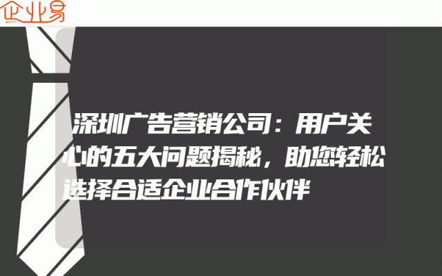 - 深圳广告营销公司:用户关心的五大问题揭秘,助您轻松选择合适企业合作伙伴