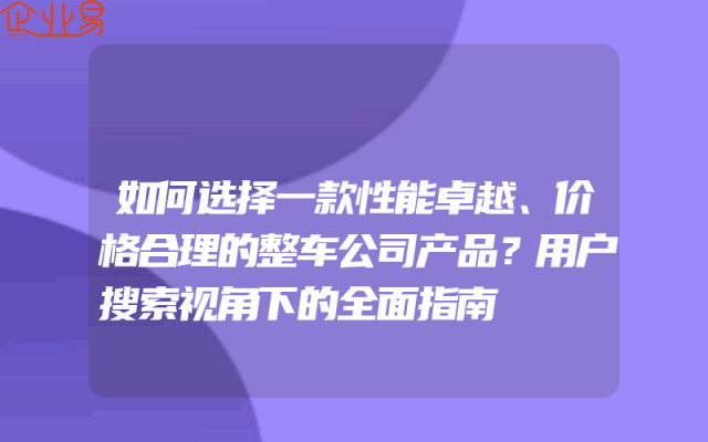 - 如何选择一款性能卓越、价格合理的整车公司产品?用户搜索视角下的全面指南