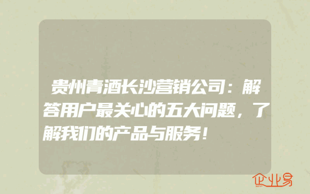 - 贵州青酒长沙营销公司:解答用户最关心的五大问题,了解我们的产品与服务!
