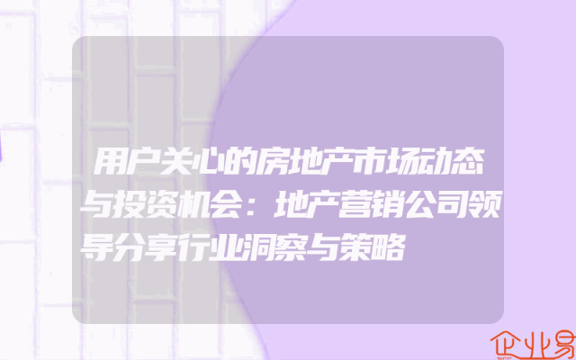 - 用户关心的房地产市场动态与投资机会:地产营销公司领导分享行业洞察与策略