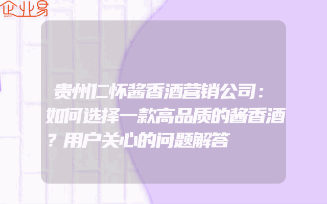 - 贵州仁怀酱香酒营销公司:如何选择一款高品质的酱香酒?用户关心的问题解答