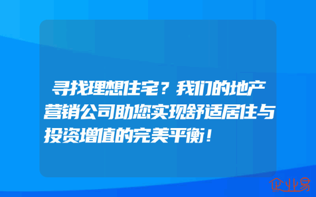 - 寻找理想住宅?我们的地产营销公司助您实现舒适居住与投资增值的完美平衡!在当今社会,房地产市场的发展日新月异,越来越多的人开始关注如何选择一处理想的住宅。作为一家专业的地产营销公司,我们深知您的需求,并致力于为您提供舒适的居住环境以及投资增值