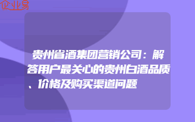 - 贵州省酒集团营销公司:解答用户最关心的贵州白酒品质、价格及购买渠道问题