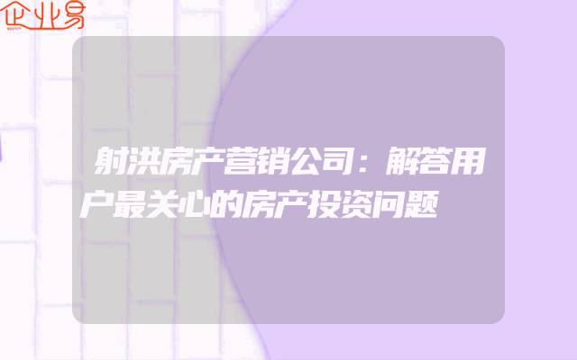 - 射洪房产营销公司:解答用户最关心的房产投资问题
