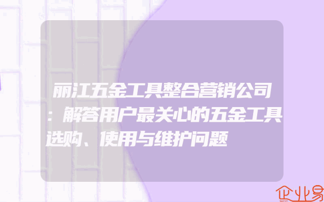 - 丽江五金工具整合营销公司:解答用户最关心的五金工具选购、使用与维护问题