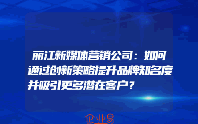 - 丽江新媒体营销公司:如何通过创新策略提升品牌知名度并吸引更多潜在客户?