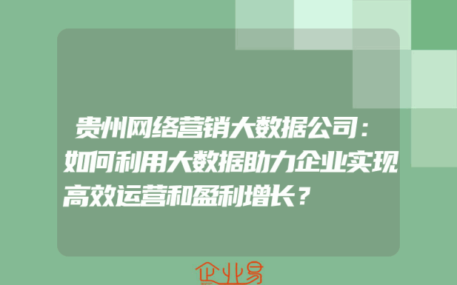 - 贵州网络营销大数据公司:如何利用大数据助力企业实现高效运营和盈利增长?