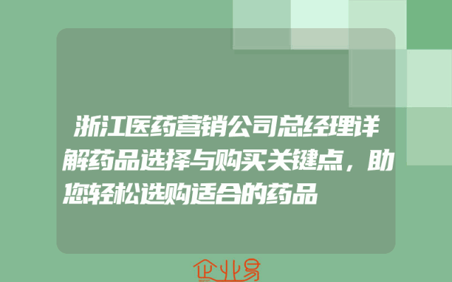 - 浙江医药营销公司总经理详解药品选择与购买关键点,助您轻松选购适合的药品