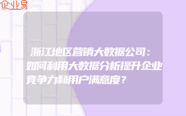 - 浙江地区营销大数据公司:如何利用大数据分析提升企业竞争力和用户满意度?