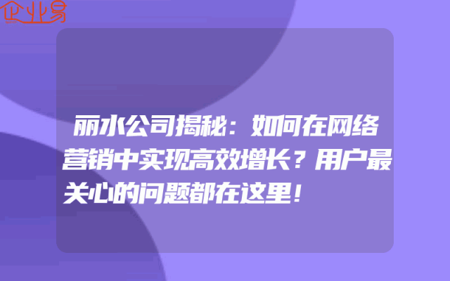 - 丽水公司揭秘:如何在网络营销中实现高效增长?用户最关心的问题都在这里!