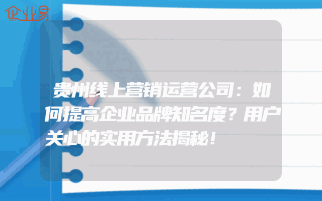 - 贵州线上营销运营公司:如何提高企业品牌知名度?用户关心的实用方法揭秘!