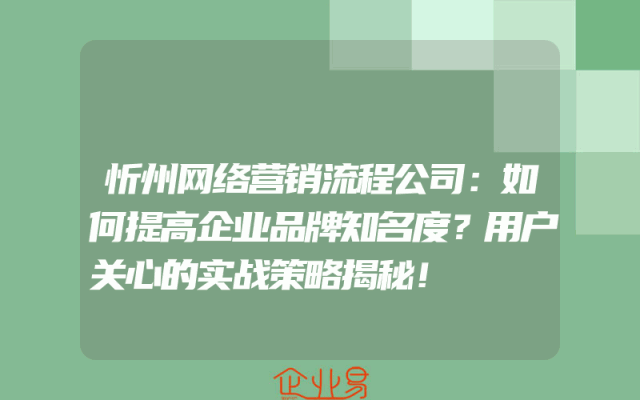 - 忻州网络营销流程公司:如何提高企业品牌知名度?用户关心的实战策略揭秘!