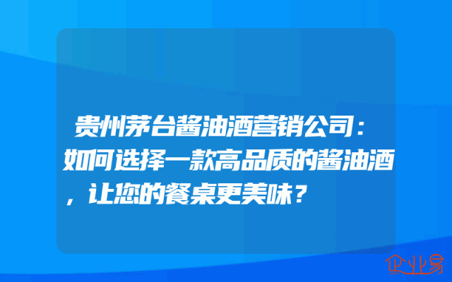- 贵州茅台酱油酒营销公司:如何选择一款高品质的酱油酒,让您的餐桌更美味?