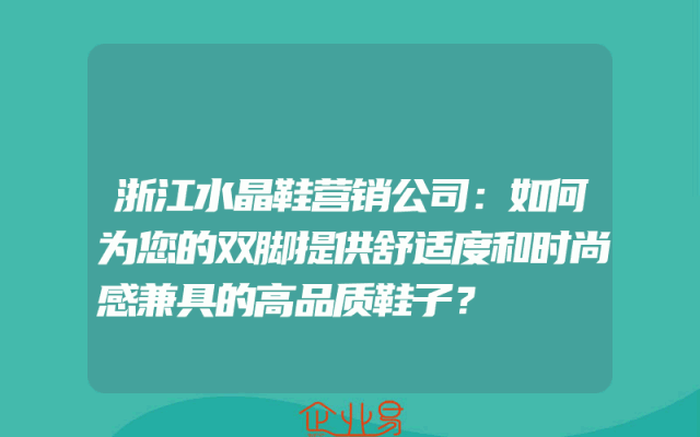 - 浙江水晶鞋营销公司:如何为您的双脚提供舒适度和时尚感兼具的高品质鞋子?
