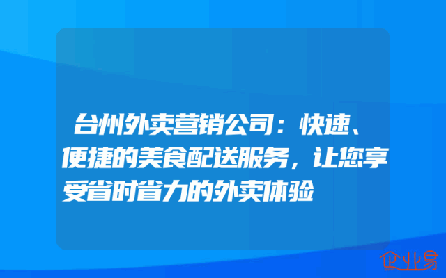 - 台州外卖营销公司:快速、便捷的美食配送服务,让您享受省时省力的外卖体验