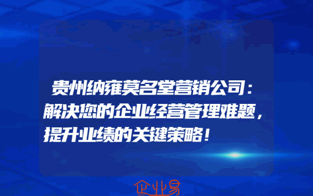 - 贵州纳雍莫名堂营销公司:解决您的企业经营管理难题,提升业绩的关键策略!