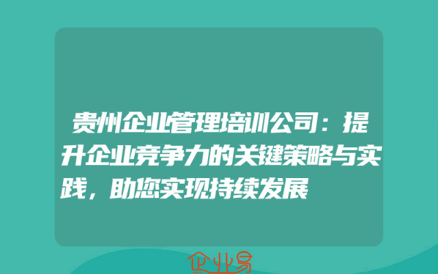 - 贵州企业管理培训公司:提升企业竞争力的关键策略与实践,助您实现持续发展
