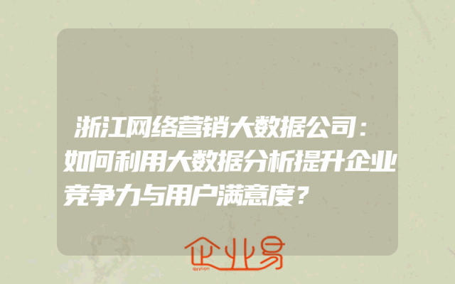 - 浙江网络营销大数据公司:如何利用大数据分析提升企业竞争力与用户满意度?