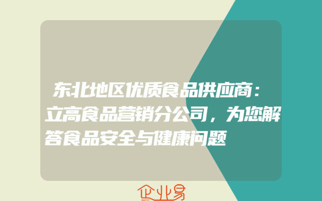 - 东北地区优质食品供应商:立高食品营销分公司,为您解答食品安全与健康问题