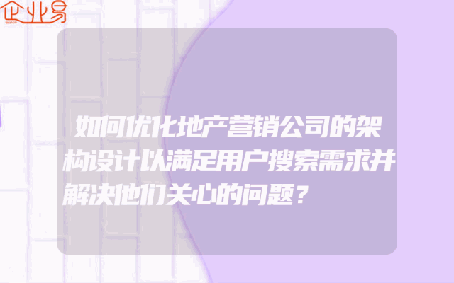 - 如何优化地产营销公司的架构设计以满足用户搜索需求并解决他们关心的问题?