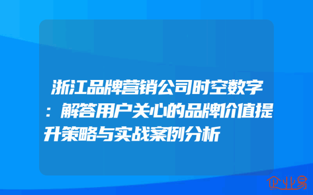 - 浙江品牌营销公司时空数字:解答用户关心的品牌价值提升策略与实战案例分析