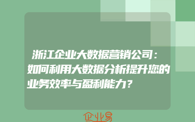 - 浙江企业大数据营销公司:如何利用大数据分析提升您的业务效率与盈利能力?