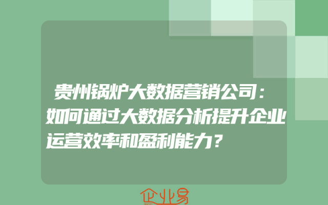 - 贵州锅炉大数据营销公司:如何通过大数据分析提升企业运营效率和盈利能力?