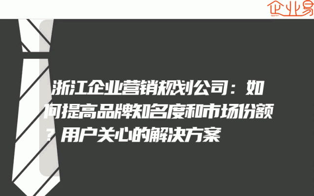 - 浙江企业营销规划公司:如何提高品牌知名度和市场份额?用户关心的解决方案