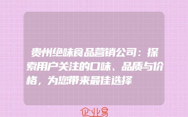 - 贵州绝味食品营销公司:探索用户关注的口味、品质与价格,为您带来最佳选择