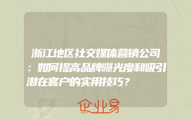 - 浙江地区社交媒体营销公司:如何提高品牌曝光度和吸引潜在客户的实用技巧?