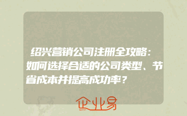 - 绍兴营销公司注册全攻略:如何选择合适的公司类型、节省成本并提高成功率?